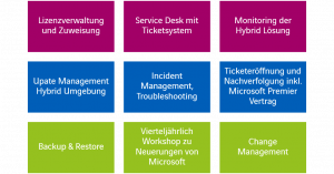 Von der Überwachung der Hybrid Lösung, dem Update Management und der Lizenzverwaltung bis hin zum Backup und Restore – Wir stehen Ihnen bei jedem Schritt zur Seite und unterstützen Sie mit regelmäßigen Workshops zu den Neuerungen sowie beim Change Management.